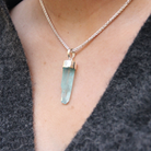 Ett otroligt halssmycke av äkta silver och rå akvamain. Kedja ingår ej utan det lägger du till i menyn för kedjor.