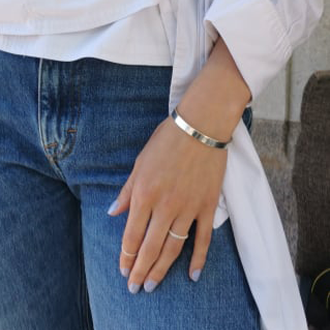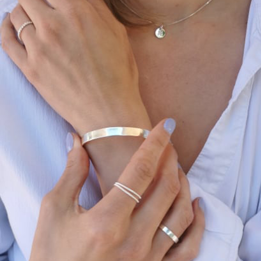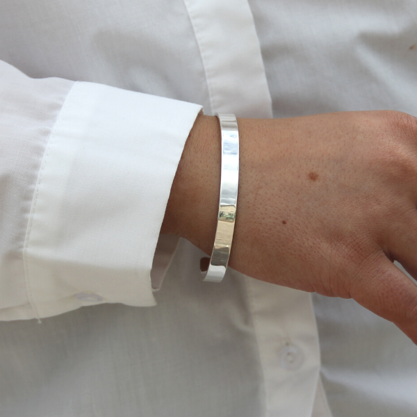 En lite bredare variant av vårt populära släta armband. Armbandet mäter 55x65 mm i diameter och är 7 mm brett.