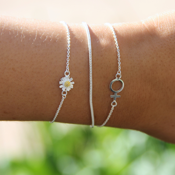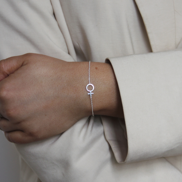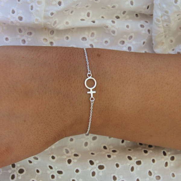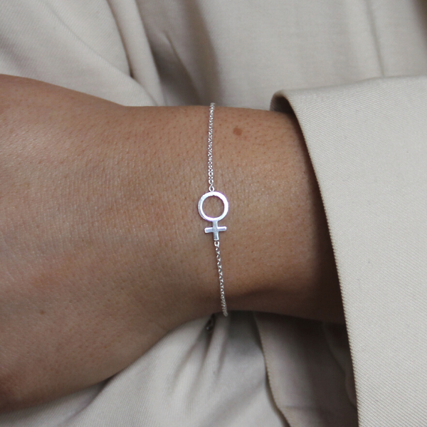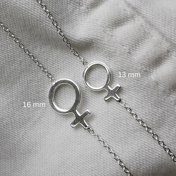 Ett måste i smyckesgarderoben! Venus, kvinnotecknet, har blivit omåttligt populärt att bära som smycke. Bär det med stolthet! Detta venustecken är 13mm. Armbandet finns i flera längder, du väljer själv längd i menyn.