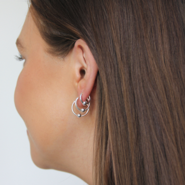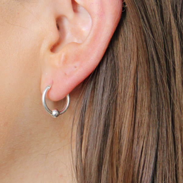 Ett par trendiga hoops som mäter 1,5mm tjocka och 14mm i diameter. Silverkulan är 3mm i diameter. Finns i flera storlekar (diamter).