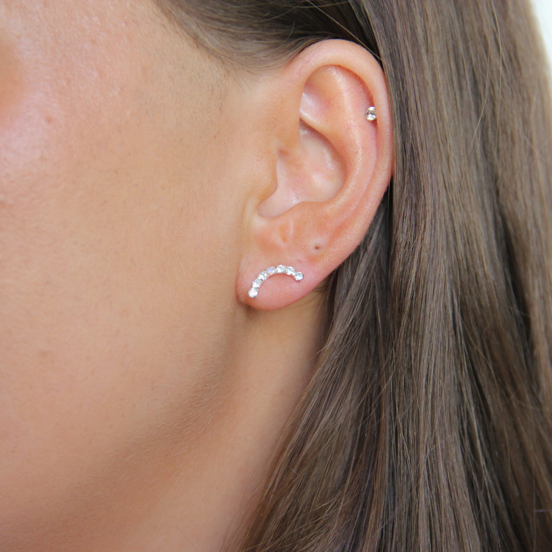 En fin glittrande vit båge med zirkoniastenar.