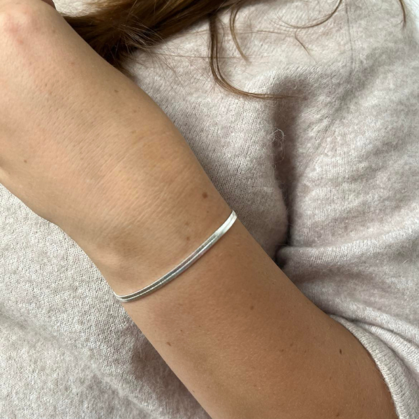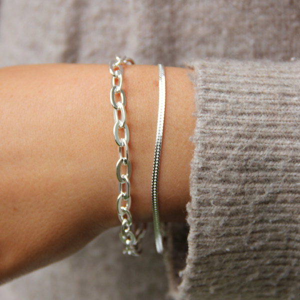 Kolla in denna skönhet! Så elegant men med en gnutta tuffhet i sig. Silverarmbandet är en flat chain ca 2,5mm bred länk och finns i flera längder. du väljer själv längd i menyn.