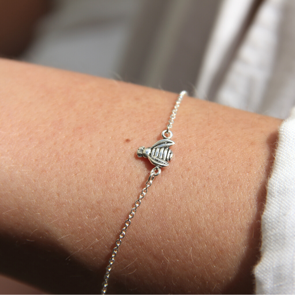 Gulligt armband med en fluga! Flugan mäter 8mm i diameter. Armbandet är 16 cm långt men kan förlängas till 18cm.