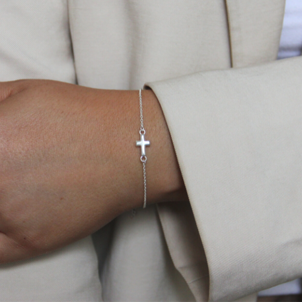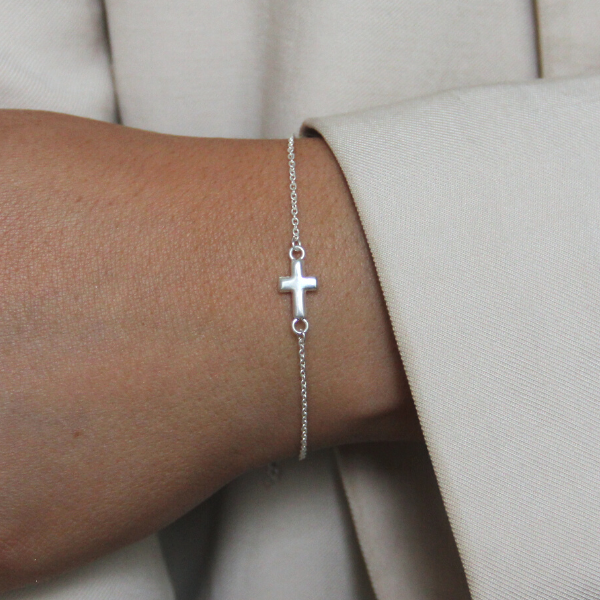 Ett silverarmband med ett sött litet silverkors i mitten. Den perfekta klassiska gåvan! Korset mäter 10x8mm.