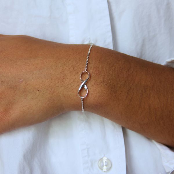 Ett fint silverarmband med ett infintytecken som mäter 20x7mm. Armbandet är 16cm långt men kan förlängas till 19 cm. Finns även i lite mindre infinity tecken som mäter 15x6mm, artikelnummer AB0132.