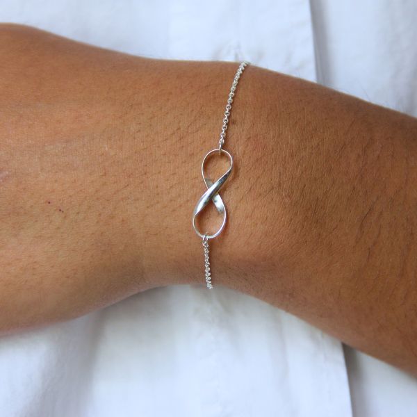 Ett fint silverarmband med ett infintytecken som mäter 20x7mm. Armbandet är 16cm långt. Finns även i lite mindre infinity tecken som mäter 15x6mm, artikelnummer AB0132.