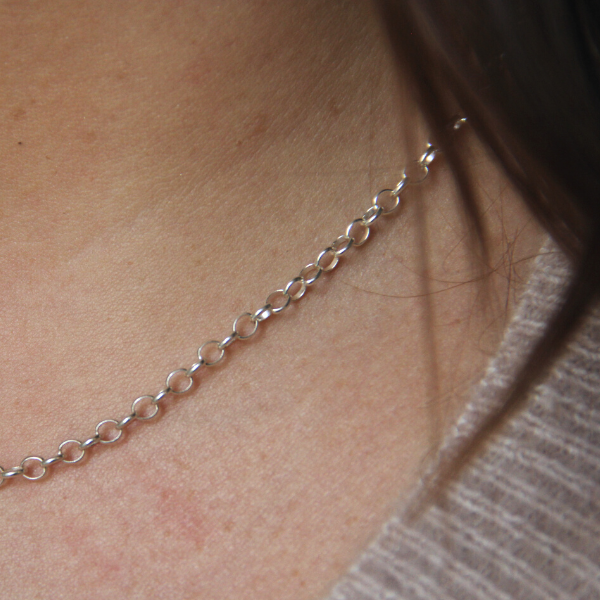 En rejäl ärtlänk som är 3mm bred. Passar lite större halssmycken eller att bära bara som den är.