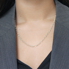 En nätt men ändå tjock halsskedja i form av en 4mm ärtlänk. Perfekt för lite större och grövre halssmycken, men även att bara bära som den är. Finns i flera längder. Du väljer själv vilken längd du vill ha i menyn.