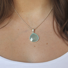 Ett vackert halssmycke i silver med äkta kalcedon. Halssmycket mäter cirka 32x20. Kedja ingår ej utan du väljer den kedja du vill ha i menyn för kedjor. På bilden ser du en 2 mm kulkedja. KALCEDON: Kalcedon skapar harmoni i sinne, kropp och själ. Den avlägsnar fientlighet och omvandlar negativitet till glädje. Den minskar tvivel på dig själv och underlättar i inre reflektioner. Den absorberar och stöter bort negativa tankar, känslor och otäcka drömmar. Kalcedon ökar din fysiska energi.
