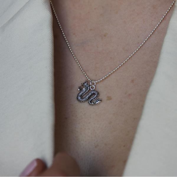 En klassisk drake som mäter 16x15mm. Obs, Kedja medföljer ej utan du väljer själv kedja i menyn.