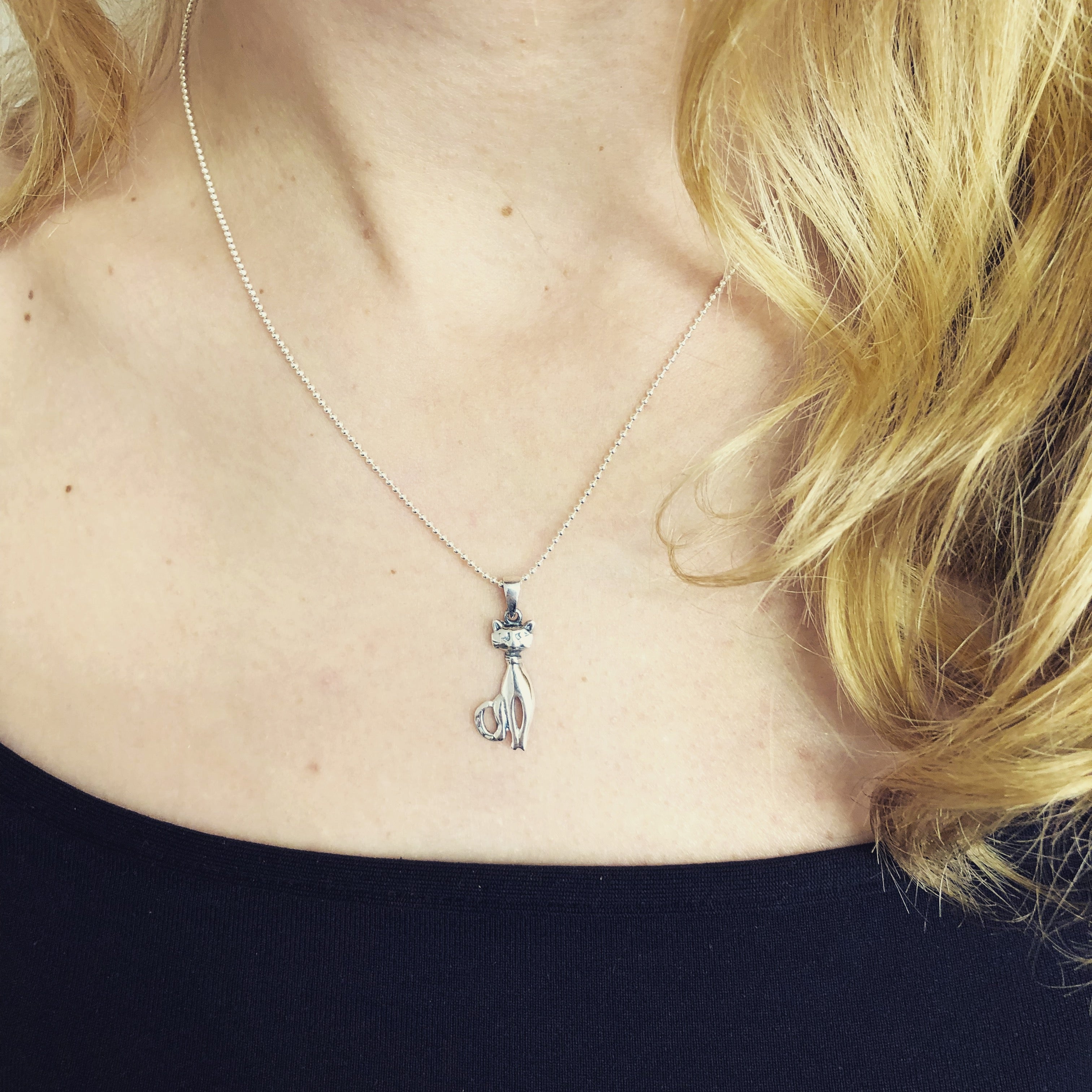 För femtusen år sedan ansåg man att katten var helig och visst finns det ett slags majestätiskt skimmer över våra vackra kattdjur. Om du vill visa världen att du är en kattmänniska är detta smycke ett utmärkt sätt. Kissekatten är 20mm hög och 10 mm bred på det bredaste stället (vid svansen).