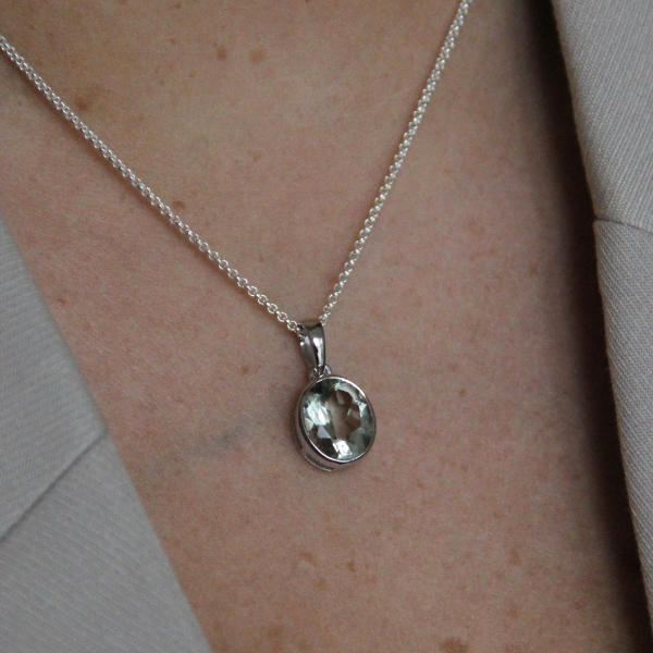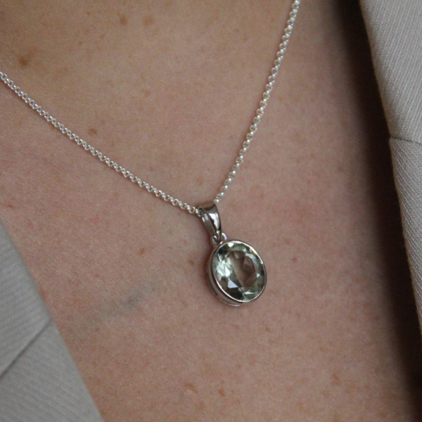 Halssmycke med en helt fantastiskt vacker grön ametist. GRÖN AMETIST: Gröna ametisten sägs främja intuition, kreativitet, tillväxt och kärlek. Att bära en grön ametist sägs främja kreativa egenskaper och stärka din intuition vilket gör denna kristall perfekt att ha med när det ska påbörjas nya projekt. Grön ametist är också en ädelsten som ofta kopplas till rikedom. Kedja ingår ej utan det väljer du själv i menyn för kedjor. Kedjan på bild är en 1,5mm ärtlänk.