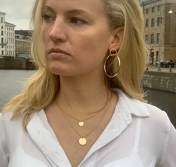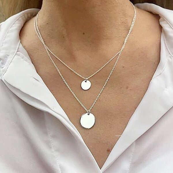 Vackert halsband med två enheter/kedjor med "dots". Ett halsband som ser ut som två. Tillverkat av 925 sterling silver. Kedjan är 40 centimeter lång med en förlängningskedja så att den kan bli upp till 45 centimeter lång. Finns också som guldpläterad.
