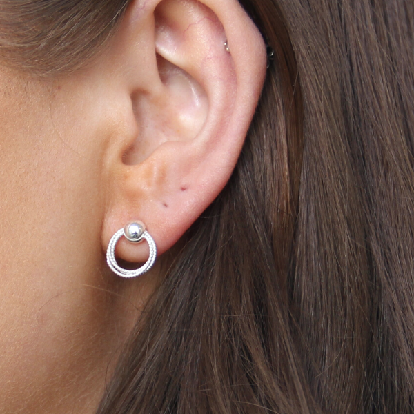 Ett par örhängen med tre glittrande ringar i en silverkula. Ringarna sitter inte fast utan går att röra och snurra på. Perfekta vardagsörhängen!