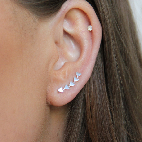 SINGLE EARCLIMBER I SILVER FIVE HEARTS