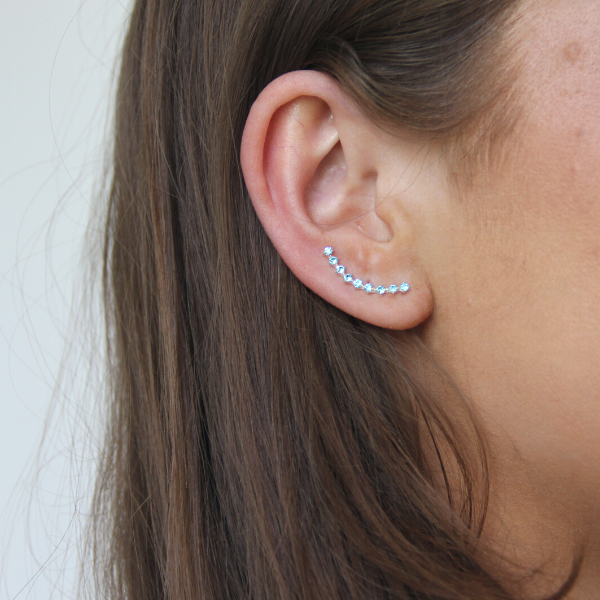 En earclimber som klättrar snyggt upp på örat med nio glittrande stenar. Stenarna är cubic zirkoner. Färgen på färgkartan kallas "Aqua Bohemica" och är en fin blå färg. Earclimbern mäter cirka 20mm lång.