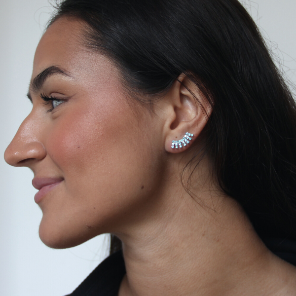 Örhängen som klättrar upp på örat, så kallade climbers. Skimrande, fina örhängen som höjer vilken outfit som helst! Färgen kallas "Aqua Bohemica". Cirka 20 mm x 6 mm stora. Dessa sätts fast som ett vanligt örhänge i örat och klättrar uppför örat, dvs du behöver ha hål i örat. Säljs styckvis, alltså kommer EN st i förpackningen.