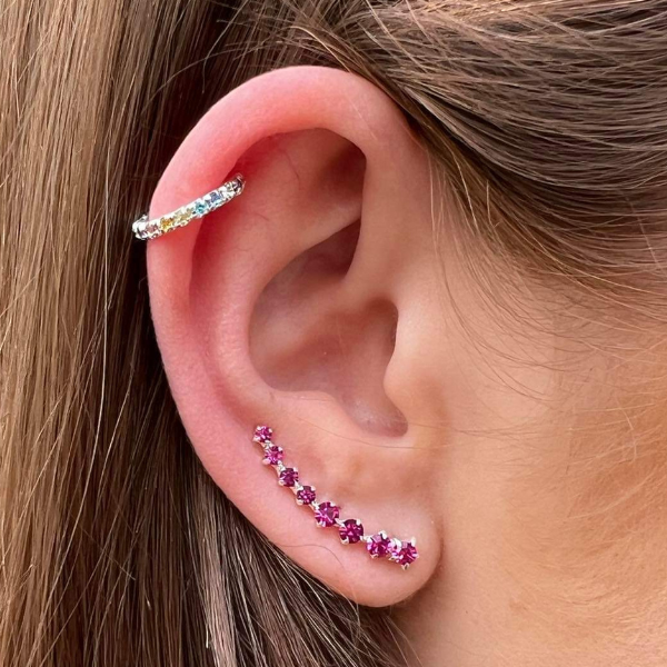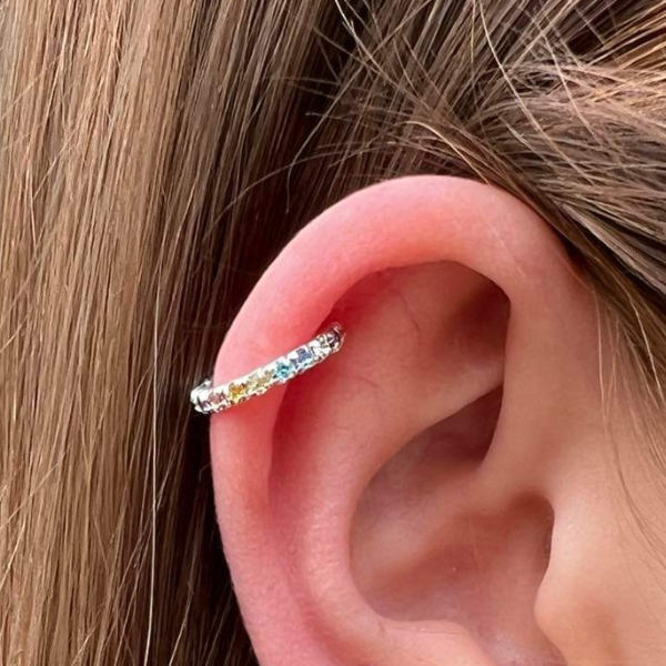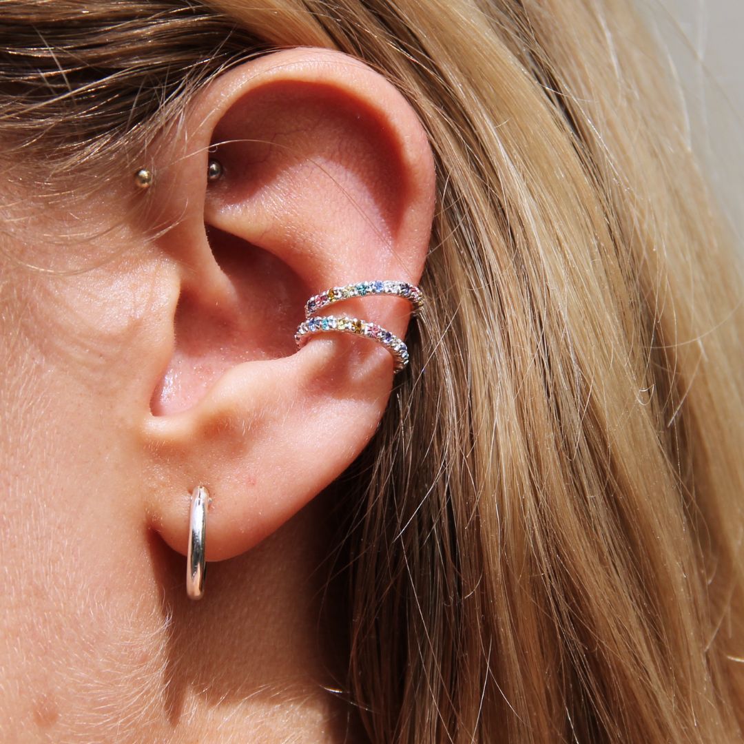 Liten earcuff med blingande zirkonior i MIXADE färger. Kan även användas som nässmycke.