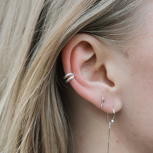 Earcuff i silver med två strängar. Denna earcuff säljs om endast EN styck i förpackningen, ej i par.