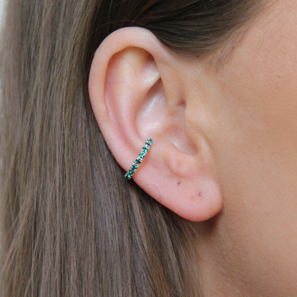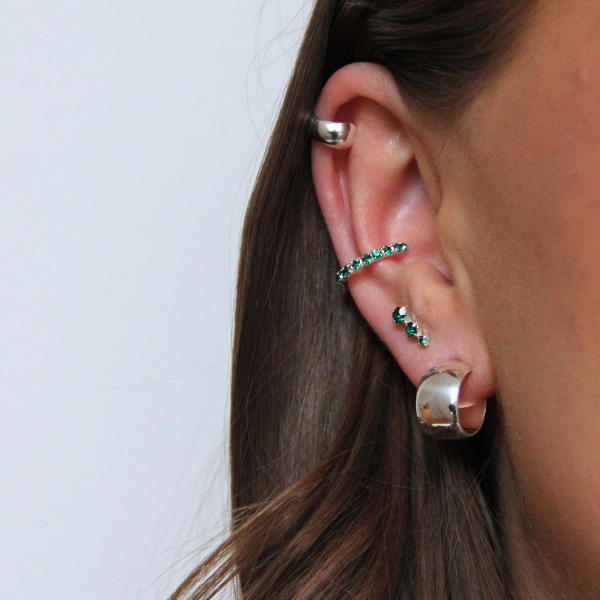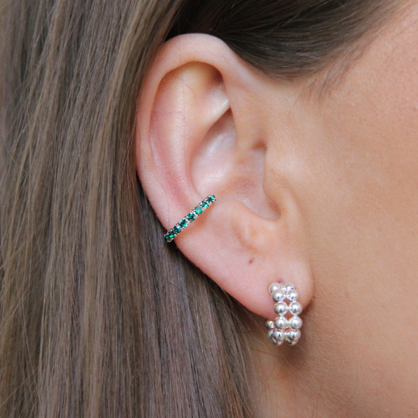 SINGLE EARCUFF I SILVER ZIRKONIA LARGE GRÖN EMERALD