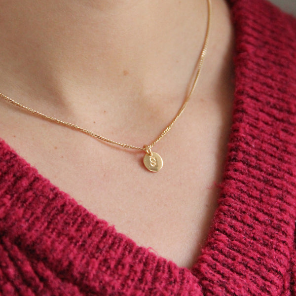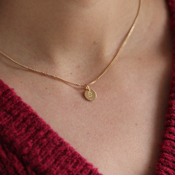 Guldpläterad silverbricka med liten bokstav som är bankad i silvret. Ingen oxidering. Plattan som bokstaven sitter på är ca 8mm i diameter. På bilden ses en pansarlänk ( tunn, ca 1,2 mm) men du kan välja en annan kedja.
