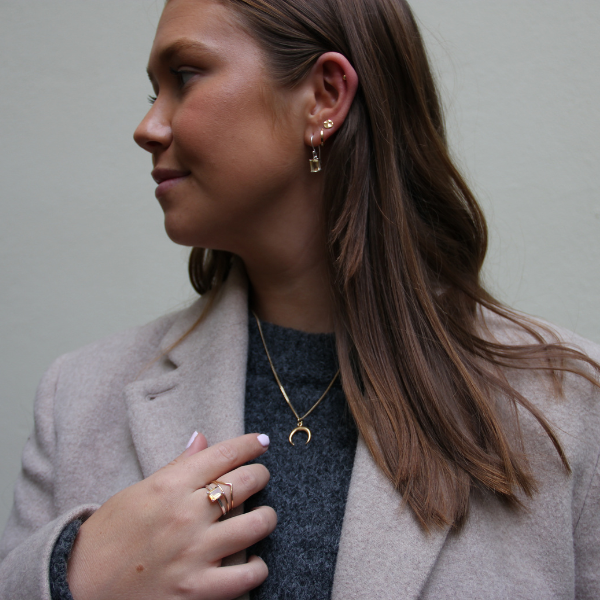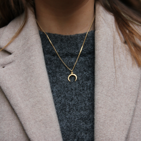 Ett fint, guldpläterat halssmycke med en halvmåne. Halssmycket mäter 15x15mm.