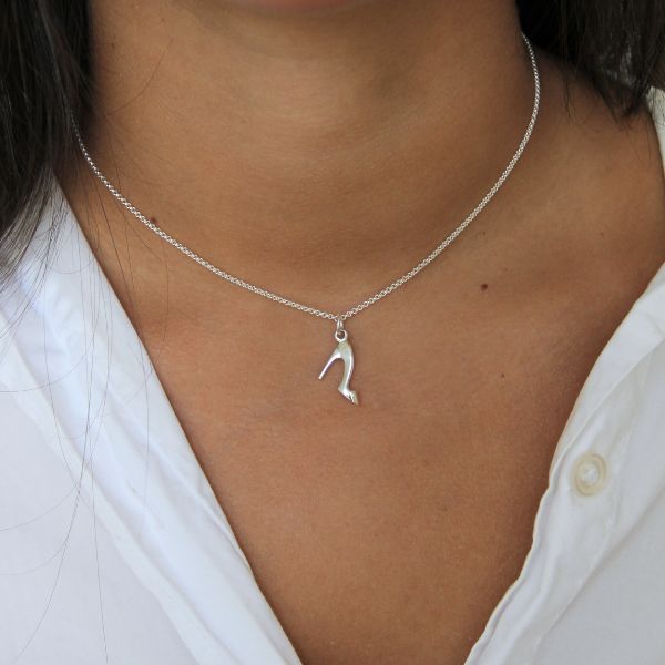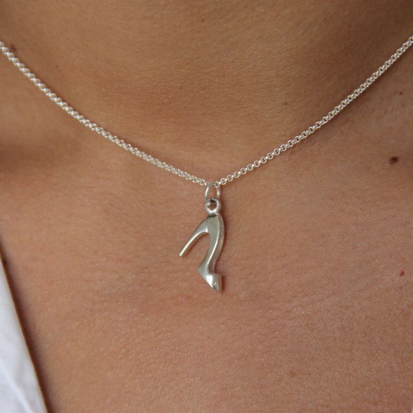 Vem har sagt att stilettklackar endast ska användas på fötterna? Varför inte hänga en skyhög klacksko runt halsen? Betydligt mer bekvämt.