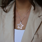 Ett silverhalssmycke i form av en gullig stjärna. Denna stjärna har en aning rundade "spetsar" och mäter ca 37mm i diameter. OBS! Kedja ingår inte utan det köper du från vår meny, "kedjor".