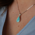 Ett otroligt vakert halssmycke med äkta larimar. den ultimata sommarstenen med dess medelhavsturkosa färg! Kedja ingår ej utan det lägger du till i menyn för kedjor. Observera att alla äkta stenar är unika. Detta smycke väger ca 3,5 gram. LARIMAR: Larimar ger oss både frihet och gemenskap i relationer. Den stöder oss att vara lyckliga tillsammans och kunna prata och kommunicera med varandra. Använd Larimar när du vill kommunicera från hjärtat, från din sanning till allas lycka och glädje.