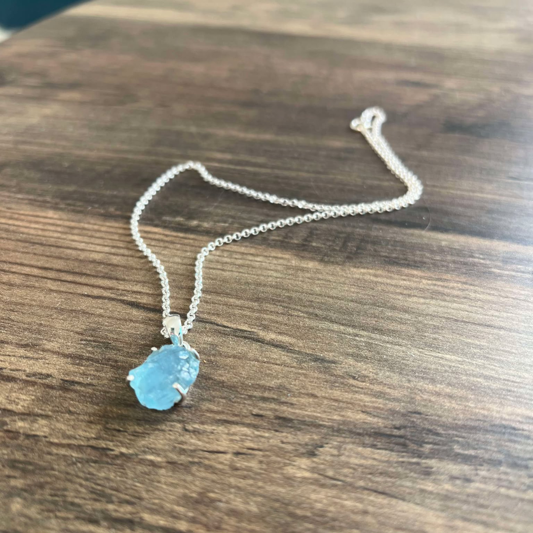 Rå akvamarin är en otroligt vacker ädelsten som påminner om en droppe vatten. Den kommer i en ljus blå nyans som är lugnande och harmoniskt. Det sägs ju också att den lugnar tankar och hjärtan.