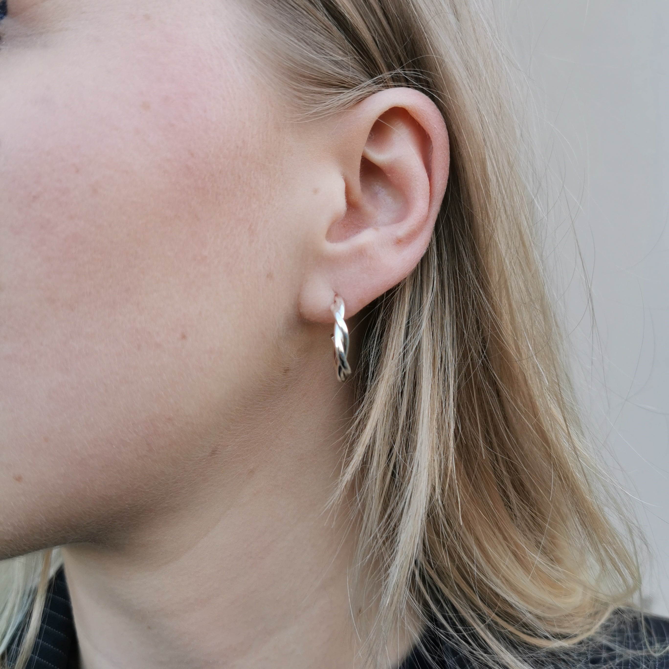 En klassisk twistad creol med stiftknäppe. Cirka 2 x 20 cm stora.