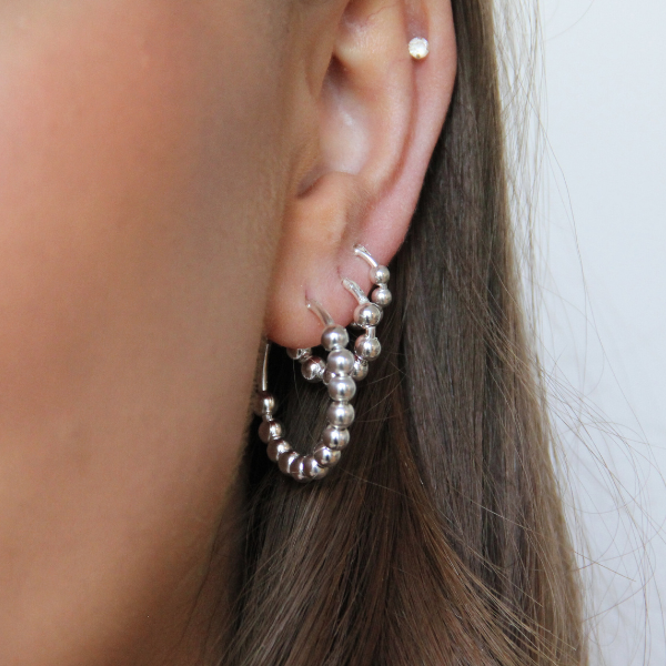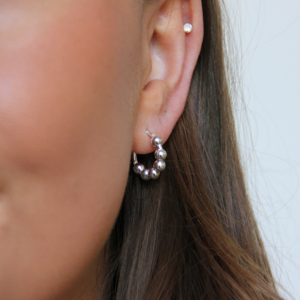 Ett par trendiga silverhoops med silverkulor. Silverkuvlorna mäter 4mm i diameter och själva hoopsen mäter 15mm i diameter. Creolen är en instickscreol. Supersnyggt att kombinera med samma modell i flera storlekar.