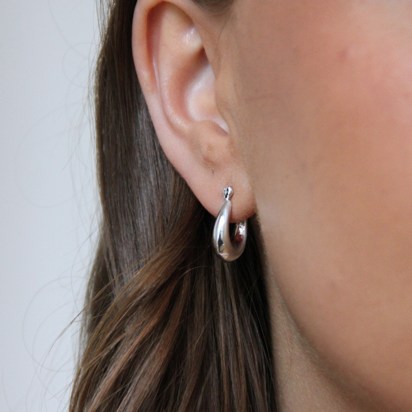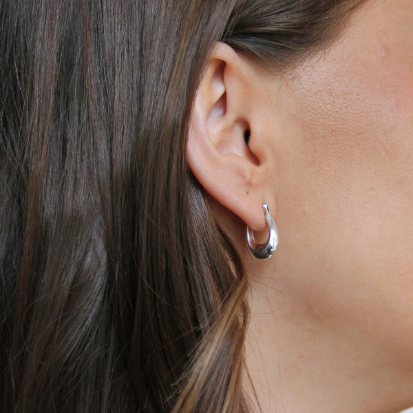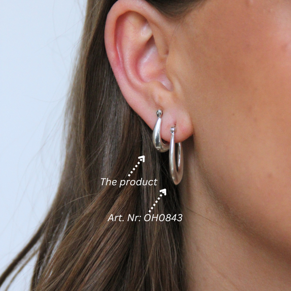 Ett par trendiga silverhoops! Dessa silvershoops mäter ca 17x12mm. Finns i en större modell som heter "Verona" och har artikelnummer OH0843. Supersnyggt att kombinera med! Knäpps genom att piggen förs in i en klyka baktill.