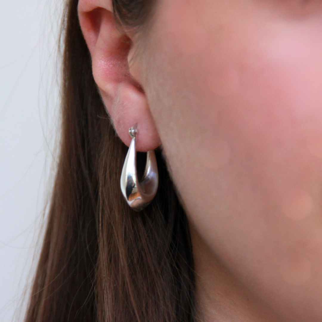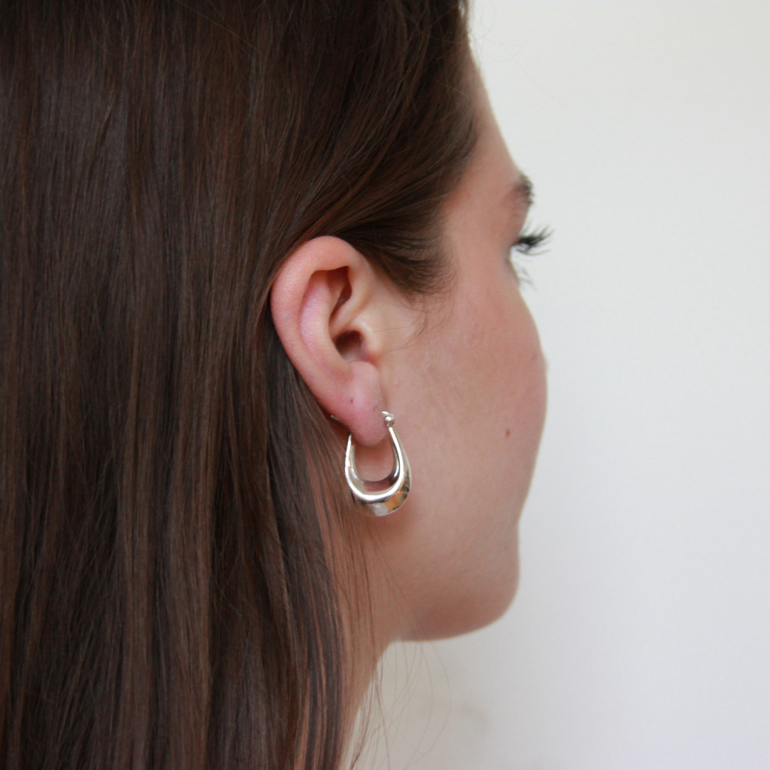 Vacker välvt örhänge som knäpps med en pigg som man för in i en klyka bakom örat. ca 25x18mm.