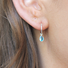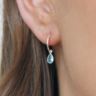 Ett par snygga creoler med en droppformad cubic zirkon. Droppen mäter cirka 6x4mm. Droppen är avtagbar om man bara vill använda creolen. Färgen på droppen kallas "Aqua Bohemica" och är ljusblå.