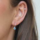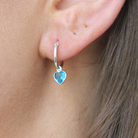 Supersöt liten creol med ett hängande ljusblått cubic zirkonia-hjärta. Hjärtat går att ta bort så man kan använda endast creolen. Creolen är en tunn creol, ca 12-14mm i diameter. Hjärtat mäter cirka 5mm i diameter.