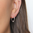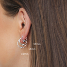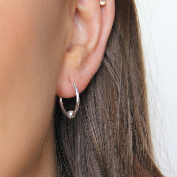 Ett par trendiga hoops som mäter 1,5mm tjocka och 16mm i diameter. Silverkulan är 3mm i diameter. Finns i flera storlekar (diamter).