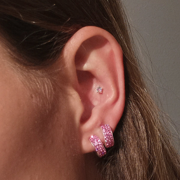 Är du sugen på lite färg är det här du ska leta. Stenarna i våra creoler är oftast av typen zirkonia, dvs en halvsyntetisk sten. De glimmar vackert och är nästintill oförstörbara i jämförelse med t ex glas-stenar. Då stenarna ofta är lite tyngre och stiftet på baksidan tunnt, är det viktigt att man tar det försiktigt när de ska knäppas, så inte stiftet går av.