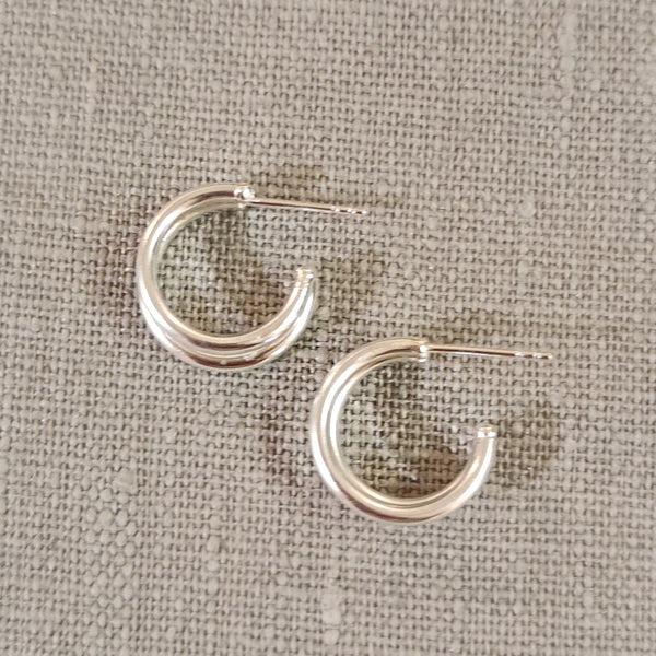 Dessa snygga creoler är i matt silver med stift som knäpps baktill. Creolen är 1,6cm i diameter med två dubbla creoler som gör denna creol lite extra speciell.