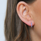 Söt liten creol med fina glittrande stenar. Creolen är 10 mm i diameter och 1,5mm bred. Knäpps med stift som knäpps med en silverplupp baktill.