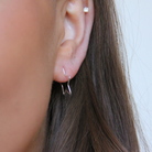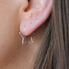 Ett par trendiga silverhoops i form av en stjärna. Stjärnan mäter 17mm i diameter, alltså mellan "spetsarna". Finnd även i en lite större variant, med artikelnummer OH0434.