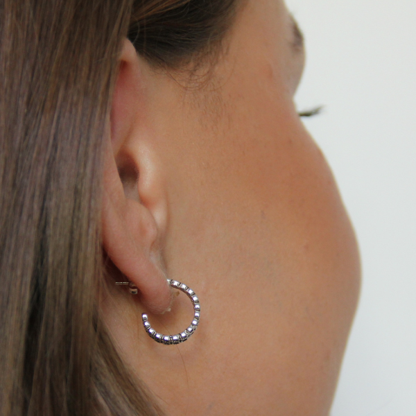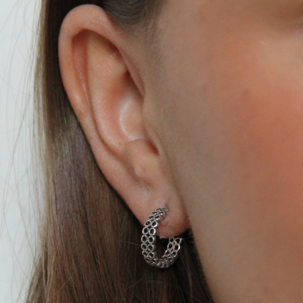 Små trevliga hoops som knäpps med stift och fluga bakom örat. Måtten är 4x13mm.