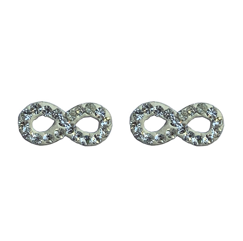 Sött litet tecken med infinitytecknet med vita strasstenar. Plattan som stenarna sitter på är silver i vit färg. tecknet är ca 10x4mm.