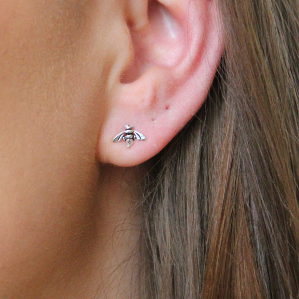 Ett par små söta örhängen i form av ett bi. Mäter cirka 9x6mm. Knäpps med stift och silverplupp.