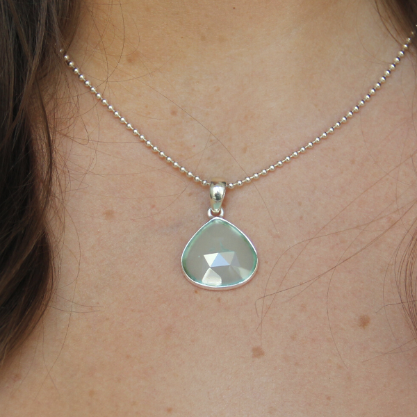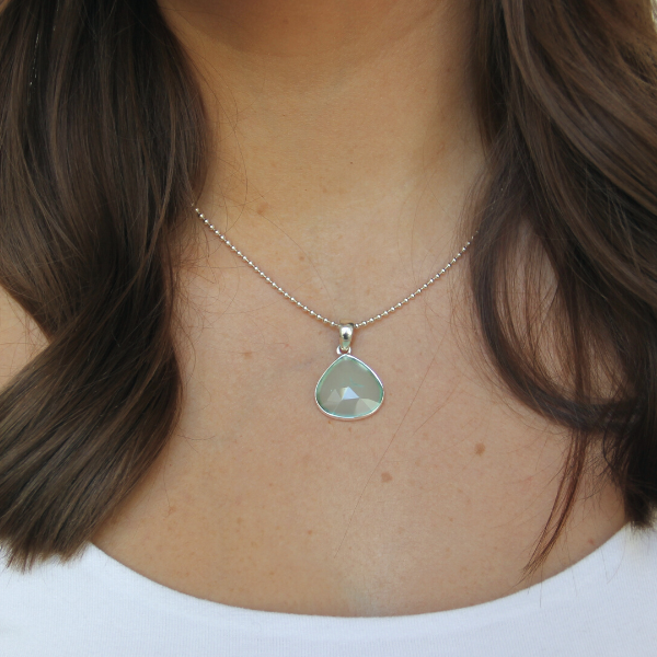 Ett vackert halssmycke i silver med äkta kalcedon. Halssmycket mäter cirka 30x20mm inklusive hänget. Kedja ingår ej utan du väljer den kedja du vill ha i menyn för kedjor.