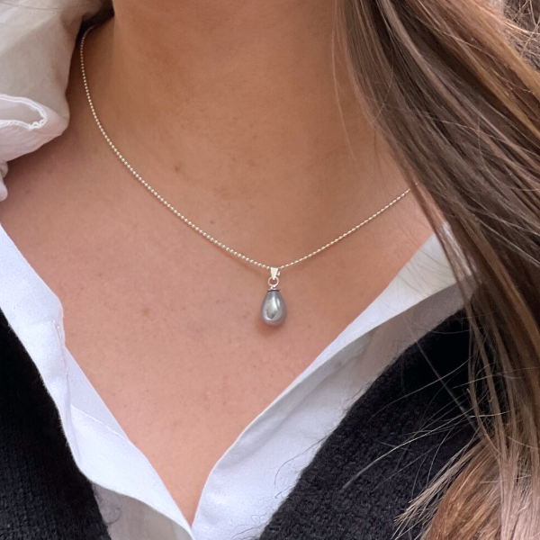 HALSSMYCKE/BERLOCK I SILVER GRÅ PÄRLEMOR DROPPE