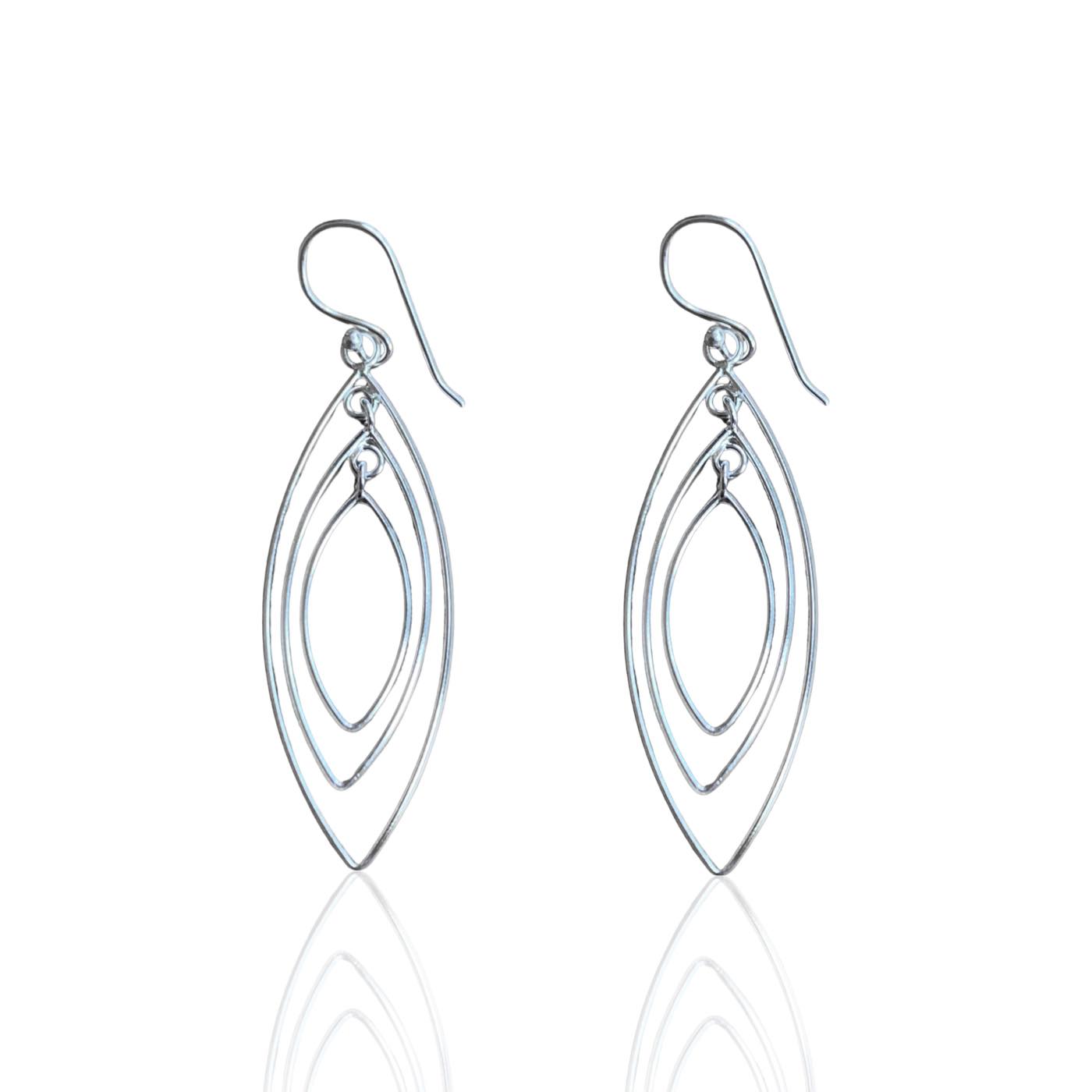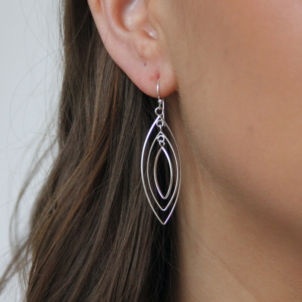Vackra ellipser som hänger tre stycken på rad i varandra. Gjort av silvertråd så örhänget är lätt, men ger ändå intrycket att vara ett större rejälare örhänge. Ca 30mm högt och 17mm brett.