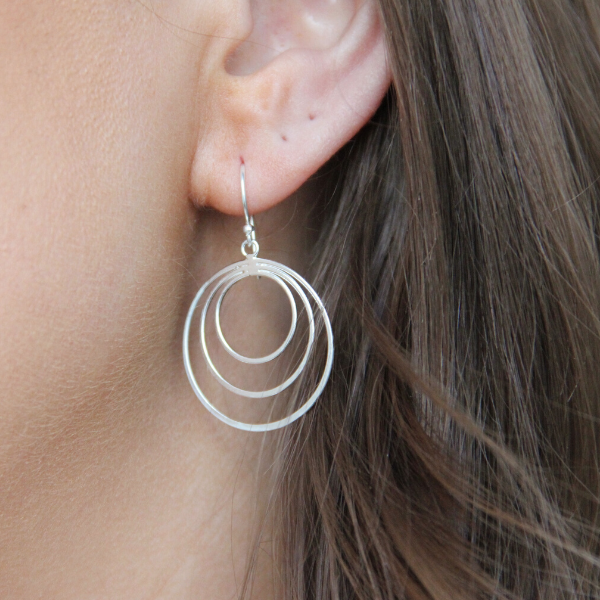 Ett par klassiska örhängen på krok med tre cirklar i olika storlekar. 25mm i diameter.