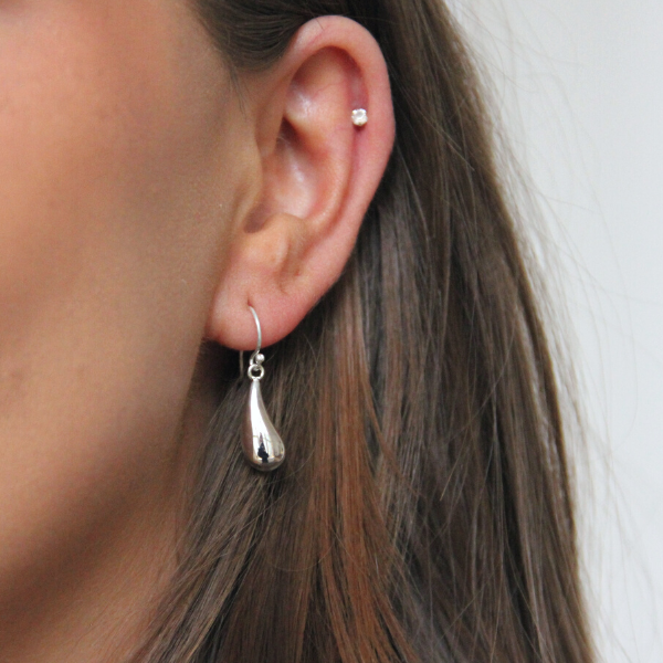 Ett par snygga örhängen i form av en hängande droppe. Droppen mäter ca 15x7mm.