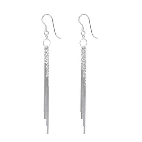Örhänge med tre stavar som hänger bredvid varandra från en tunn elegant kedja.